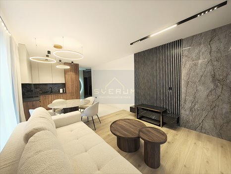 - przestronny salon z częścią jadalnianą, sofą oraz strefą RTV