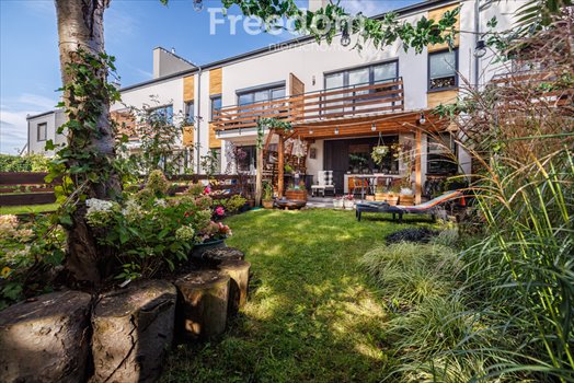 Największym atutem nieruchomości jest przestronny taras o powierzchni około 20 m², z którego prowadzi wyjście bezpośrednio z części dziennej. To idealne miejsce na poranną kawę czy spotkania z bliskimi. Taras płynnie łączy się z zadbanym ogródkiem wypełnionym roślinami i zielenią, który graniczy bezpośrednio z lasem. Dzięki temu przestrzeń ta zapewnia wyjątkowe poczucie prywatności, spokoju i bliskości natury.