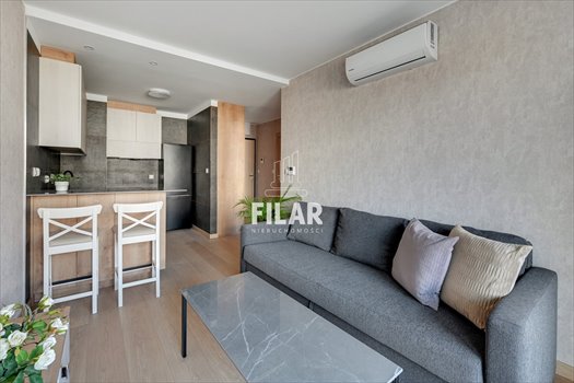 Przestronne, dwupokojowe mieszkanie znajdujące się na drugim piętrze budynku. Lokal posiada klimatyzację. Pomieszczenia są bardzo jasne i ustawne. Część dzienna z bezpośrednim wyjściem na balkon połączona została aneksem w zabudowie. W salonie stolik kawowy, stylowa sofa oraz szafka RTV (brak telewizora). Strefa kuchenna wyposażona w niezbędny sprzęt AGD, bardzo funkcjonalna, dużo miejsca do przechowywania i blatu roboczego. Przedpokój oferuje dużą, funkcjonalną szafę. W łazience prysznic z deszczownicą, umywalka oraz WC (brak pralki), uroku dodają stylowe kafle. Mieszkanie jest gotowe do wprowadzenia, przestronne i przytulne.