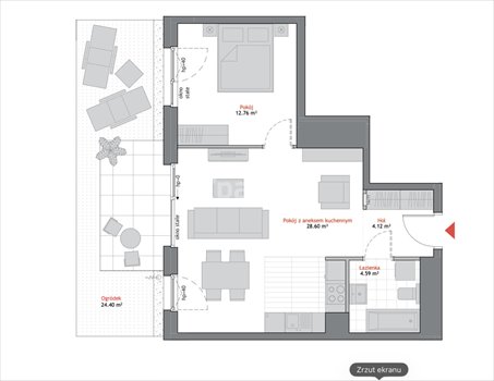 **Prywatny ogródek o powierzchni 24,40 m²**