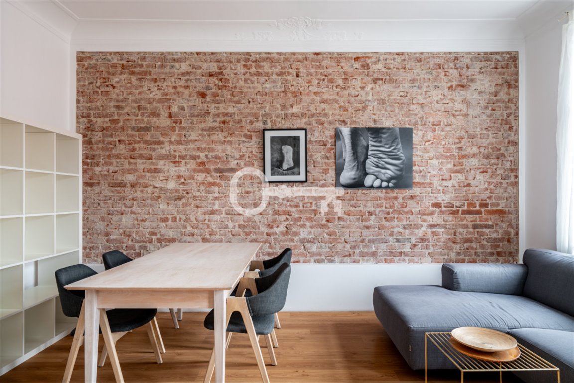 Wnętrze zachwyca klimatem i dbałością o detale. W pokoju dziennym znajduje się efektowna ściana z oryginalnej cegły, a całość dopełnia zachowana sztukateria sufitowa.W sypialni drewniany parkiet, który nadaje wnętrzu ciepła i ponadczasowego charakteru. Aranżacja inspirowana stylem nowojorskiego studia, które harmonijnie łączy elegancję z loftowym charakterem kamienicy. Mieszkanie jest jasne, przytulne i ma wyraźnie wyczuwalną „duszę”, co czyni je wyjątkowym na tle standardowych ofert.