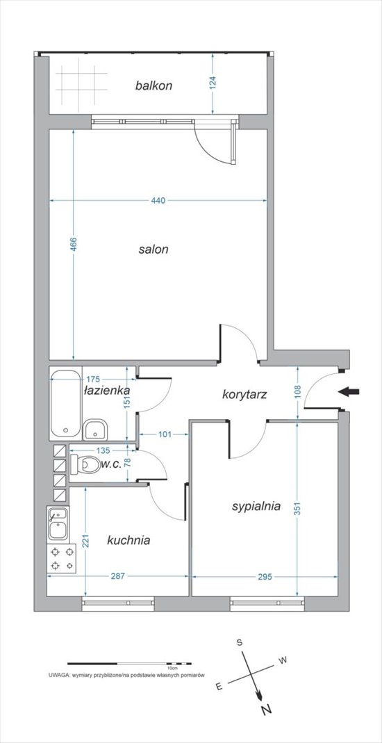 WC: 1,05 m² - oddzielne pomieszczenie, które zwiększa komfort mieszkania.
