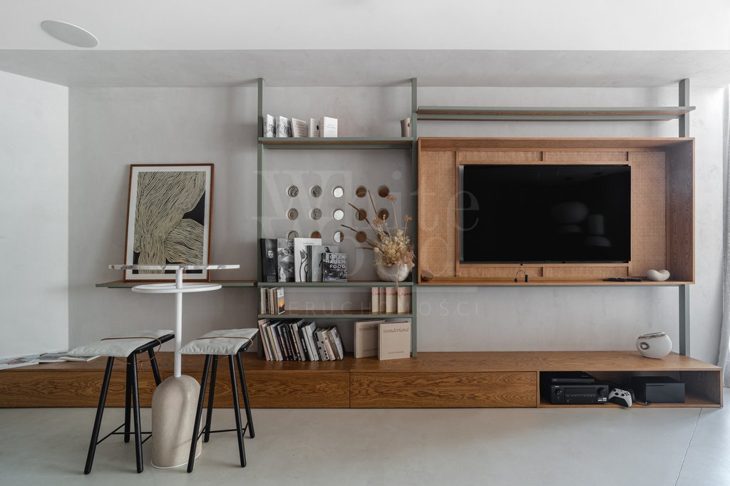 - Przestronny salon z aneksem kuchennym – jasny, nowoczesny układ, wysokiej jakości materiały