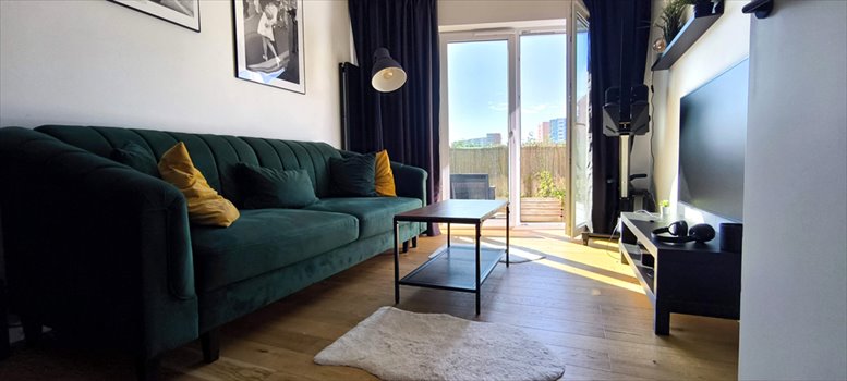 - Przestronny salon z aneksem kuchennym i wyjściem na balkon