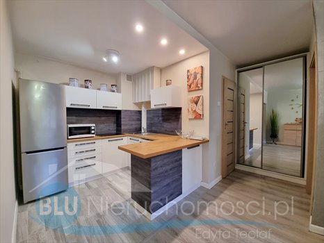 Mieszkanie po generalnym remoncie, nowocześnie zaaranżowane, całkowicie nowe wyposażenie, kuchnia w nowej zabudowie wraz AGD w tym zmywarka, otwarta częściowo na większy pokój, osobno sypialnia, łazienka z kabiną prysznicową wyposażona w pralkę, w korytarzu szafka garderobiana.