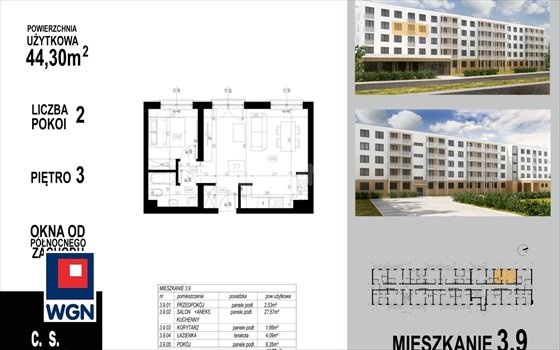 Na sprzedaż nowoczesne mieszkanie z windą w stanie deweloperskim, znajdujące się na trzecim piętrze w budynku mieszkalnym (mieszkanie 3.9).