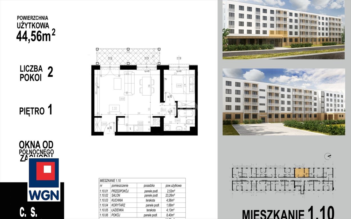 Na sprzedaż nowoczesne mieszkanie z balkonem i windą w stanie deweloperskim, znajdujące się na pierwszym piętrze w budynku mieszkalnym (mieszkanie 1.10).