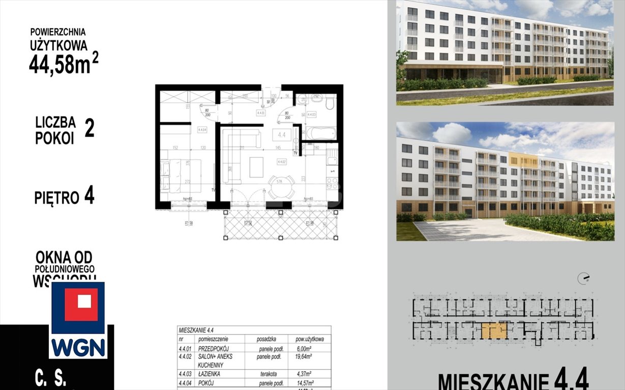 Na sprzedaż nowoczesne mieszkanie z balkonem i windą w stanie deweloperskim, znajdujące się na 4 piętrze w budynku mieszkalnym (mieszkanie 4.4).
