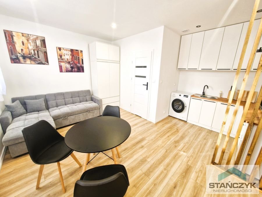 - 1 pokój z aneksem kuchennym oraz łazienka, całość po generalnym remoncie (nowy sprzęt AGD oraz wyposażenie mieszkania).