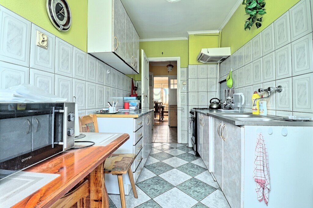 Mieszkanie charakteryzuje się korzystnym układem pomieszczeń, co sprawia, że jest funkcjonalne i przestronne. Uwagę przyszłych banywców na pewno przykują, skrzydłowe drzwi prowadzące do dużego pokoju, które dodają wnętrzu wyjątkowego charakteru. Dobrze zachowany parkiet drewniany w połączeniu z dużymi oknami PCV zapewnia komfort oraz przyjemną atmosferę w pokojach.