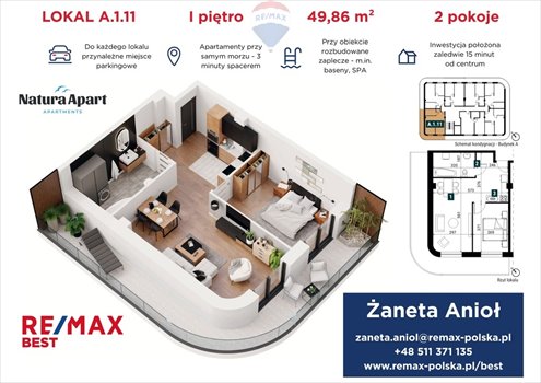 Na sprzedaż przestronny apartament o powierzchni 49,86 m², położony w malowniczej części Jastrzębiej Góry, przy ul. Rozewskiej 44 w nowoczesnym budynku w standardzie deweloperskim- Inwestycja Natura Apart Apartaments.