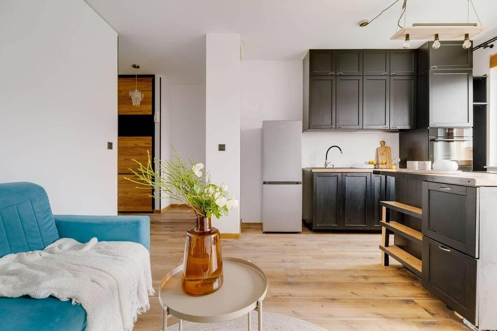- Funkcjonalna kuchnia z wyposażeniem