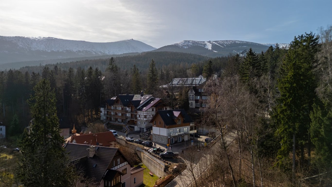 Ogromnym atutem nieruchomości jest również jej lokalizacja. Apartament znajduje się w spokojnej części Karpacza, w okolicy bliskiej centrum miasta , a jednocześnie w miejscu, z którego w zaledwie kilka minut można dotrzeć do czarnego, czerwonego, niebieskiego oraz zielonego szlaku turystycznego. Dzięki temu lokal stanowi doskonałą bazę wypadową zarówno dla miłośników górskich wędrówek, jak i innych form aktywnego wypoczynku.