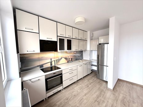 To mieszkanie daje Ci kuchnię, z której możesz korzystać od pierwszego dnia. Masz zabudowę, sporo szafek i komplet sprzętów widocznych na zdjęciach (płyta, piekarnik, okap, lodówka). Gotujesz, odkładasz, zamykasz — i masz porządek.