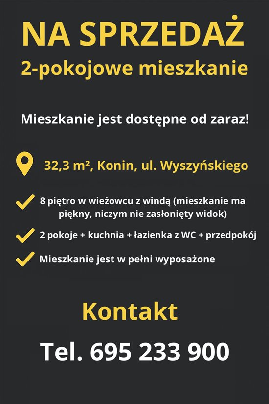 Mieszkanie dwupokojowe na sprzedaż Konin, Kardynała Stefana Wyszyńskiego - 32,3m2