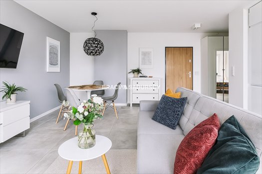W jego skład wchodzą dwa pokoje, umeblowana i wyposażona kuchnia w aneksie - otwarta na salon, łazienka z prysznicem oraz przedpokój. Mieszkanie posiada duży balkon. Razem z mieszkaniem do sprzedania zewnętrzne miejsce postojowe.