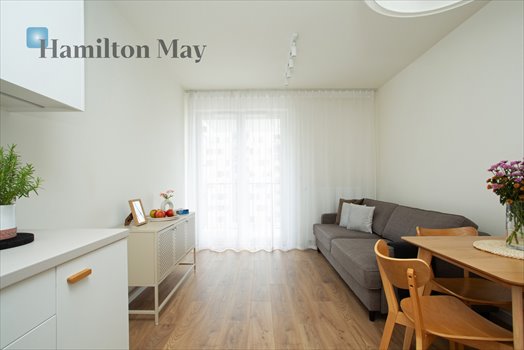 * jasny salon z aneksem kuchennym z wyjściem na słoneczny balkon,