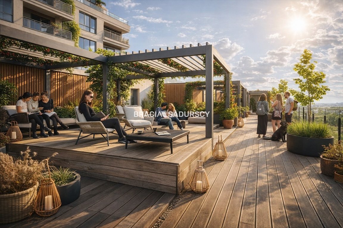 Eleganckie klatki schodowe. Wykończenia szkłem. Sale spotkań. Lobby z recepcją. Przestrzeń coworking. Ogólnodostępny taras na dachu. Pralnia. 3 windy. Garaż podziemny. Stojaki na rowery.
