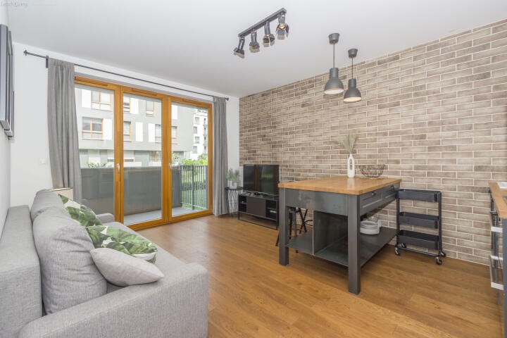 W pełni umeblowane i wyposażone mieszkanie o powierzchni 38 m2 znajduje się na wysokim parterze nowoczesnego budynku z windą i składa się z: