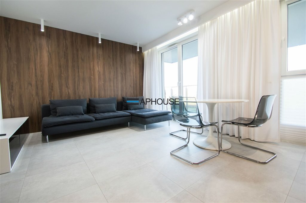 Prezentowane mieszkanie z bezpośrednim widokiem na Wisłę, wykończone zostało z wykorzystaniem materiałów najwyższej klasy zgodnie z indywidualnym projektem przygotowanym przez architekta wnętrz. Mieszkanie jest w pełni umeblowane i wyposażone. W salonie znajduje się komplet wypoczynkowy, meble RTV, TV oraz stół z krzesłami. Kuchnia została wyposażona w lodówko zamrażarkę, zmywarkę, okap, piekarnik. Łazienka wyposażona jest w prysznic, toaletę, umywalkę z szafką oraz pralkę. W sypialni znajduje się łóżko dwuosobowe oraz garderoba. W przedpokoju znajduje się dodatkowy schowek.