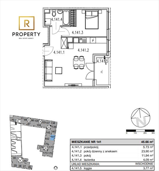 W mieszkaniu o powierzchni 50,20 m2 znajdziemy: