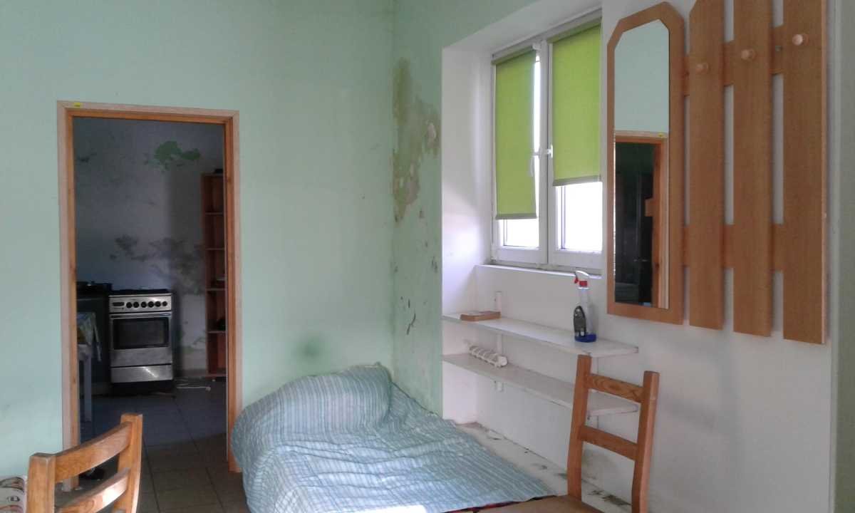 Mieszkanie wymaga remontu i składa się z dwóch pokoi, dwóch kuchni, dwóch łazienek oraz osobnych wejść bądź możliwość odblokowania drzwi pomiędzy pokojami i zrobienia ich jako przechodnie. Powierzchnia użytkowa to około 72m2. Do mieszkań przynależy piwnica oraz grunt około 700 m2. Okna plastikowe. Ogrzewanie piec na drewno w kotłowni na oba mieszkania oraz jedno górne. Możliwość przerobienia na gazowe. Nowa elewacja. 3 Fazy. Na posesji znajduje się metalowy garaż po jednej stronie oraz możliwość parkingu po drugiej stronie budynku.
