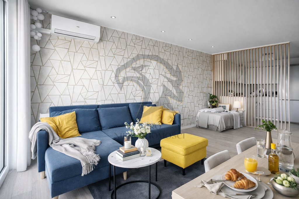 To mieszkanie to 41 m² czystej wygody i praktyczności: salon z aneksem kuchennym, sypialnia, łazienka i klimatyzacja, która jest absolutnym zbawieniem, gdy lato przypomina tropiki, a mecz kończy się w dogrywce.
