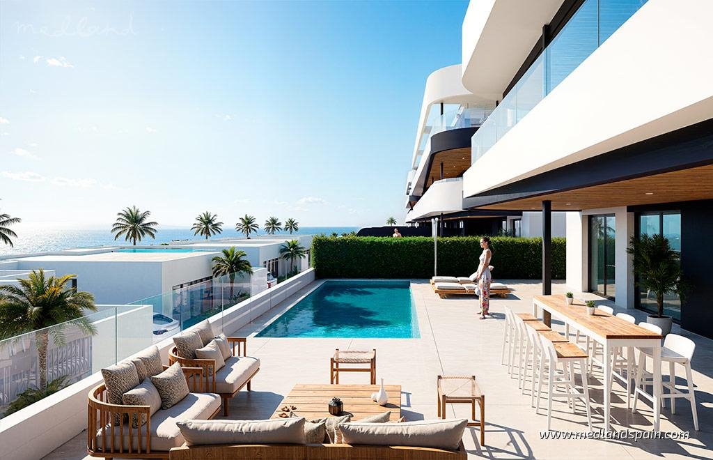 Set within La Serena Golf Resort in Los Alcázares, this collection of homes enjoys a peaceful setting surrounded by fairways and open views, just 2 km from the beaches of the Mar Menor. The area combines a relaxed coastal atmosphere with easy access to local dining spots, shops and everyday amenities, creating a well-balanced environment for both year-round living and holidays.The development comprises apartments with 2 or 3 bedrooms as well as detached villas, each designed to make the most of outdoor living and natural light. Apartments are arranged across contemporary blocks, with standard layouts complemented by ground-floor homes that include private pools and larger terraces, and penthouses with private solariums. The villas feature 3 bedrooms and 3 bathrooms, distributed across generous interiors with direct access to private outdoor spaces, including a garden and pool, along with a multifunctional basement that adds flexibility to the home.All homes include electric blinds and pre-installation for ducted air conditioning, supporting comfort throughout the year. Buyers also have the opportunity to personalise certain finishes, allowing each property to reflect individual preferences within a carefully selected range of materials. Views across both the golf course and the sea are present throughout the development, enhancing the sense of openness and connection to the surroundings.The communal areas are designed with a Mediterranean character, featuring landscaped gardens, a large shared swimming pool and relaxed chill-out spaces that encourage outdoor enjoyment. Apartments also benefit from underground parking within each block, while the gated layout provides a secure and private environment for residents.Los Alcázares remains a sought-after coastal town, known for its calm waters and year-round appeal, with Murcia Airport reachable in around 30 minutes and Alicante Airport in just over an hour.