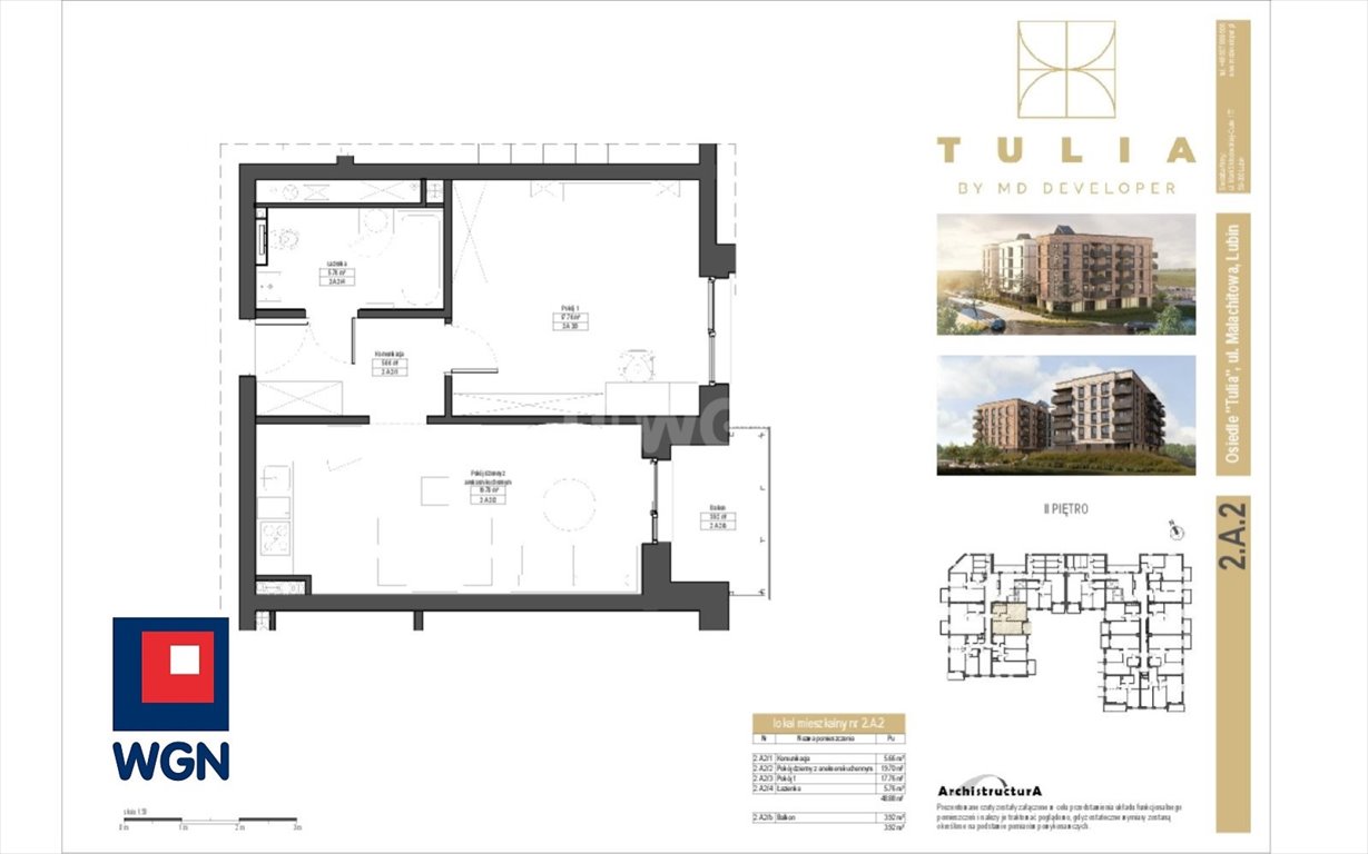 Nowoczesne 2-pokojowe mieszkanie z balkonem i windą Lubin, Malachitowa - 48,88m2