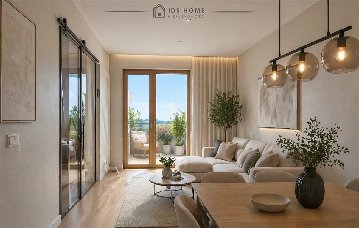 Mieszkanie wydaje się być dużo większe niż jest w rzeczywistości ze względu na wyjątkowo sprytnie wykorzystaną przestrzeń i zastosowanie innowacyjnych trików. Bardzo ładna , ustawna łazienka. Ciekawe, nietypowe wejście do sypialni od strony okna pozwala na maksymalne wykorzystanie przestrzeni i wstawienie do niej dużego łóżka dwuosobowego. Wyjście na piękny, duży balkon zarówno z sypialni jak i z głównego pokoju sprawia, że mieszkanie jest praktyczne i bardzo ustawne a prawie 8 metrowy taras daje dodatkową przestrzeń na świeżym powietrzu.