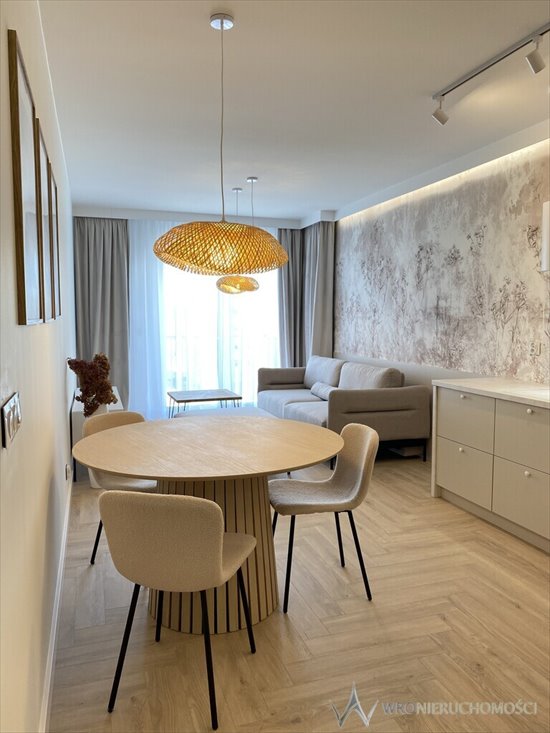 - mieszkanie jest wyposażone w meble kuchenne, stołowe, krzesła, rozkładaną sofę w salonie oraz w pełni wykończoną łazienkę z WC