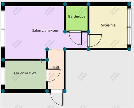 Praktyczny układ pomieszczeń - ustawny salon z aneksem kuchennym, niezależna i nieprzechodnia sypialnia, łazienka z WC, przedpokój, garderoba oraz duża piwnica o powierzchni 5,57m2.