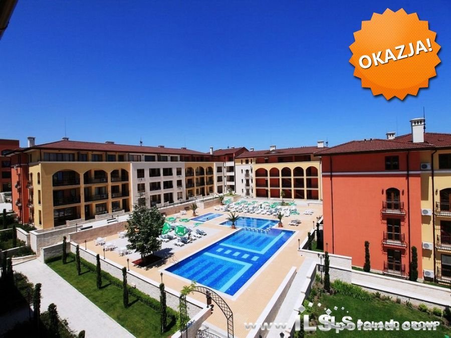 Przestronny apartament z umeblowaniem i wyposażeniem w mega okazyjnej cenie, w luksusowym, całorocznym kompleksie Galeria z pięknymi ogrodami i dużym basenem, położonym w odległości zaledwie 950 m od plaży w malowniczej miejscowości Obzor nad Morzem Czarnym w Bułgarii.