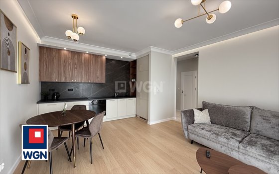 Mieszkanie słoneczne, elegancko wykończone pod klucz, z pełnym wyposażeniem. Aneks kuchenny z zabudowami stolarskimi na wymiar wraz ze sprzętami AGD w zabudowie - lodówko-zamrażarka, zmywarka, piekarnik, płyta indukcyjna, okap. W salonie znajduje się także stół z krzesłami, wygodna rozkładana sofa, komoda rtv wykonana przez stolarza. Sypialnia wyposażona w wygodne łóżko małżeńskie, szafę, stoliki nocne. Firany i zasłony szyte na wymiar. W przedpokoju znajduje się elegancka zabudowana szafa z siedziskiem. W łazience wykonany prysznic walk-in, umywalka z szafką, poświetlane lustro, podwieszane wc oraz miejsce z przyłączem do pralki. Walory inwestycji: