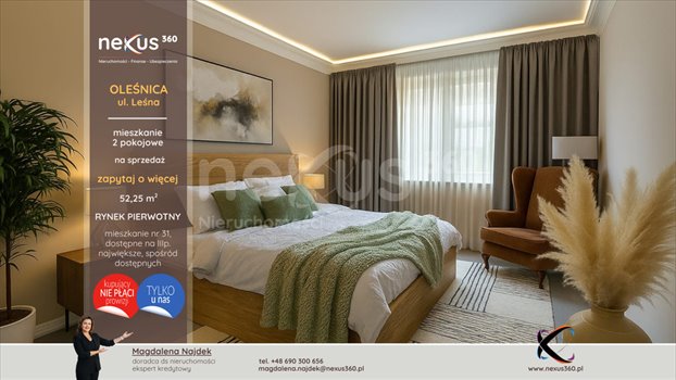 Mieszkanie dwupokojowe na sprzedaż Oleśnica, Leśna - 52,25m2