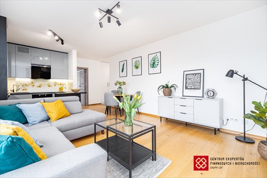 • Jasność i przestrzeń: Mieszkanie jest doskonale doświetlone, a zdjęcia potwierdzają wysoki standard mebli i wyposażenia (m.in. stylowa zabudowa kuchenna z markowym sprzętem AGD).