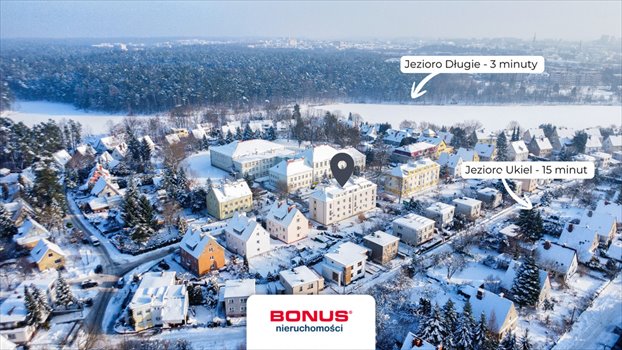 Lokalizacja mieszkania jest absolutnie unikatowa – osiedle usytuowane jest w zachodniej części miasta, w spokojnym przesmyku między dwoma jeziorami: Długim i Ukielem. Jezioro Długie (200 m od budynku) to strefa kameralna, spacerowa, bezpośrednio połączona z Lasem Miejskim – największym kompleksem leśnym w granicach miasta w Europie – oferującym dziesiątki kilometrów ścieżek rowerowych i pieszych. Z kolei Jezioro Ukiel zapewnia pełną infrastrukturę turystyczno-gastronomiczną będąc sezonowym centrum rozrywki regionu z licznymi koncertami i festiwalami.