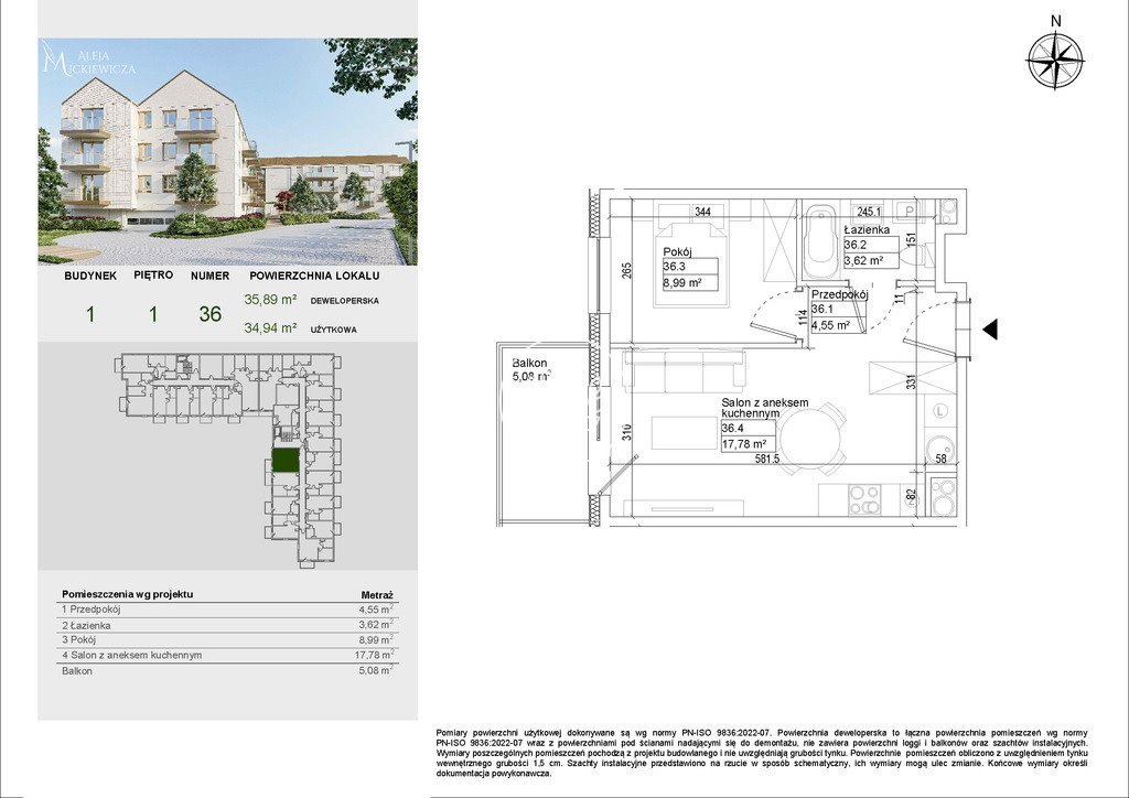 Przestronne 2-pokojowe mieszkanie w Osielsku, 34,94 m2 Osielsko, Aleja Adama Mickiewicza - 34,94m2