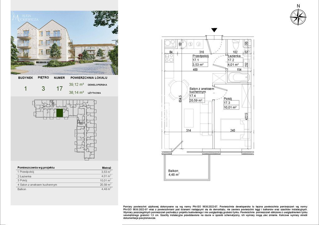 Przestronne 2-pokojowe mieszkanie 38,14 m2 w Osielsku Osielsko, Aleja Adama Mickiewicza - 38,14m2