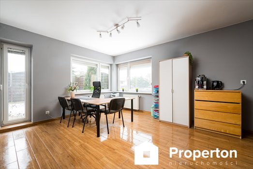 Mieszkanie jest do odświeżenia, natomiast jest zadbane i utrzymane w dobrym stanie. W całym lokalu na podłodze położona jest terakota (częściowo wymieniona), a okna są PCV. Na tę chwilę kuchnia ma formę aneksu, co wynika z funkcji biurowej, jaką obecnie pełni lokal. Istnieje pełna możliwość rearanżacji przestrzeni i przywrócenia klasycznego układu mieszkalnego, natomiast w przypadku chęci dalszego użytkowania lokalu jako miejsca prowadzenia działalności, można pozostawić układ w obecnym stanie bez konieczności dodatkowych zmian.