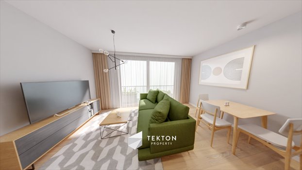 - Przestronny salon z wyjściem na balkon - widok na Las Dębiński. Pomieszczenie doświetlone przez większą część dnia.