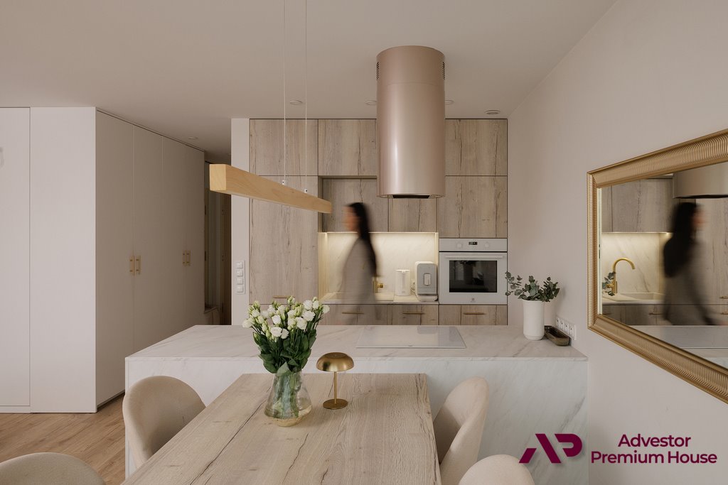 Mieszkanie znajduje się przy ul. Michała Drzymały i ma 42 m2 powierzchni i zostało wykończone w standardzie z górnej półki. Tu każdy element jest spójny, i przemyślany, a całość tworzy bardzo elegancki, ale przytulny klimat. Wszystkie meble zostały zrobione na wymiar. Część mebli to firma Egger. Jedno jest pewne: to bardzo przemyślana przestrzeń zdecydowanie dla koneserów, który cenią nietuzinkowość, detal i nie chcą wybierać między pięknem, a funkcjonalnością.