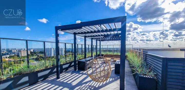 Na najwyższym piętrze – na dachu budynku – znajduje się ogólnodostępny taras z miejscem do wypoczynku, z kanapą oraz stolikiem i z kapitalnym widokiem na piękną panoramę Poznania.