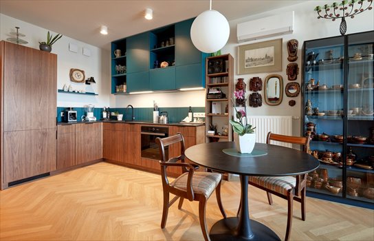 - zabudowa kuchenna na wymiar wraz z wysokiej klasy sprzętem AGD,