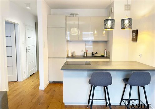 Składa się z salonu, otwartej wyposażonej kuchni z wyspą, sypialni z dużą szafą garderobianą, łazienki z prysznicem, oraz balkonu (4m2). Zostało wykończone w gustownym stylu, nie wymaga dodatkowych nakładów.