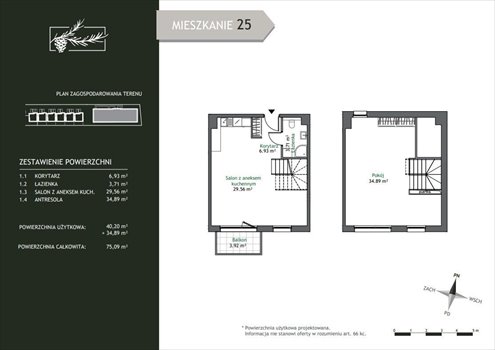 Powierzchnia użytkowa 40.20m2 + 34.89 m2 EKSTRA dodatkowej powierzchni mieszkalnej