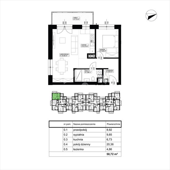 2 pokoje | 50,72 m2 | ul. Nowosądecka | Rzeszów | Przybyszówka / Franciszka Kotuli / Projektant