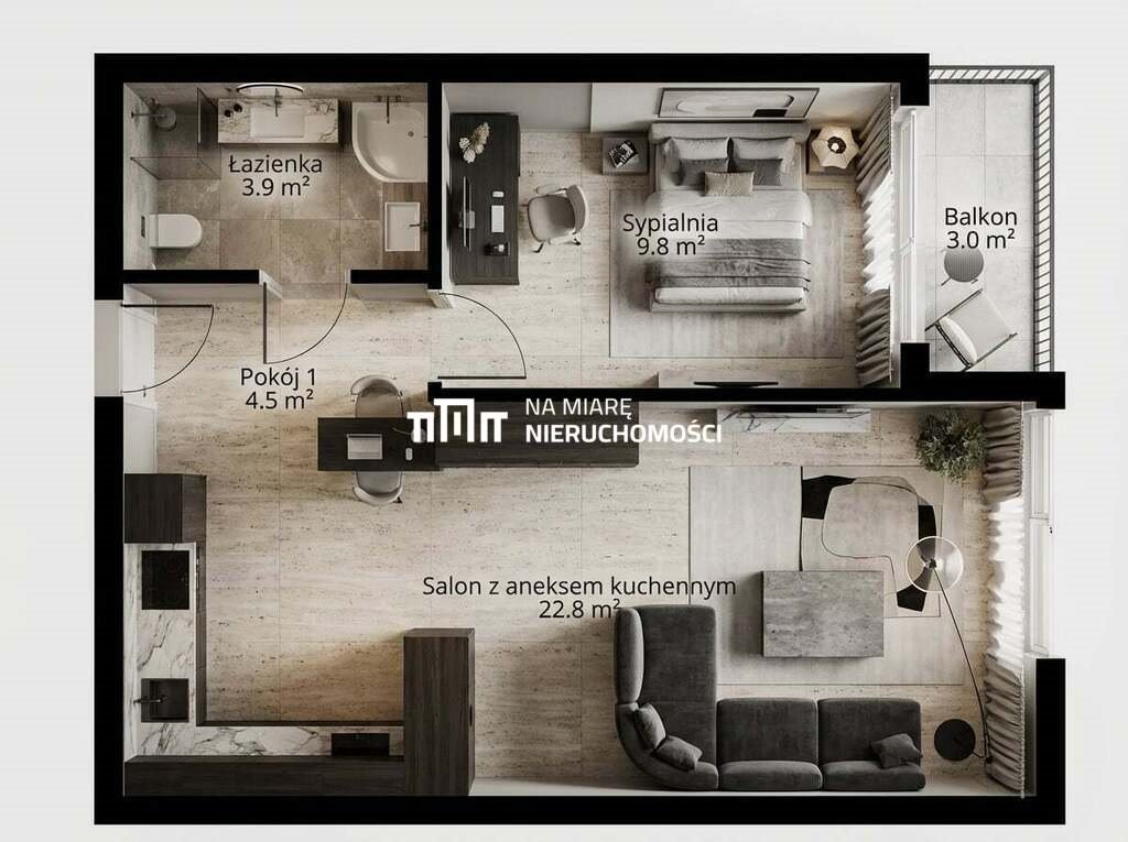 Wizualizacje przedstawiają przykładową aranżację wnętrza i mają charakter poglądowy.