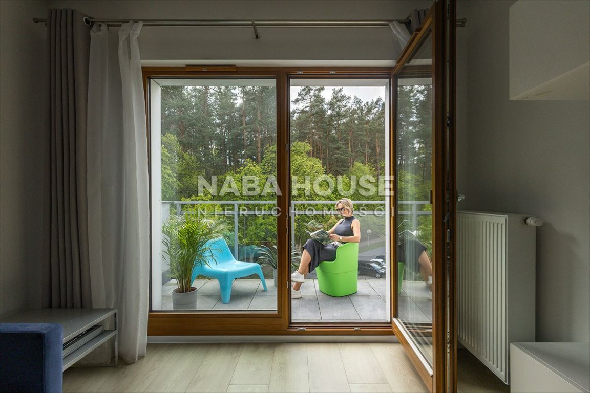 W pokoju dziennym duża witryna okienna o południowej ekspozycji, za nią duży, bardzo słoneczny taras. Usytuowanie mieszkania od tej strony świata powoduje, iż we wnętrzu jest dużo naturalnego światła. Mieszkanie urządzone w jasnych, pogodnych barwach, w salonie wygodna sofa vis a vis telewizora, stół śniadaniowy i funkcjonalny aneks ożywiony zieloną barwą szkła naściennego. Tu cały potrzebny do wygodnego zamieszkania sprzęt AGD w zabudowie białych szafek kuchennych z grafitowym blatem.