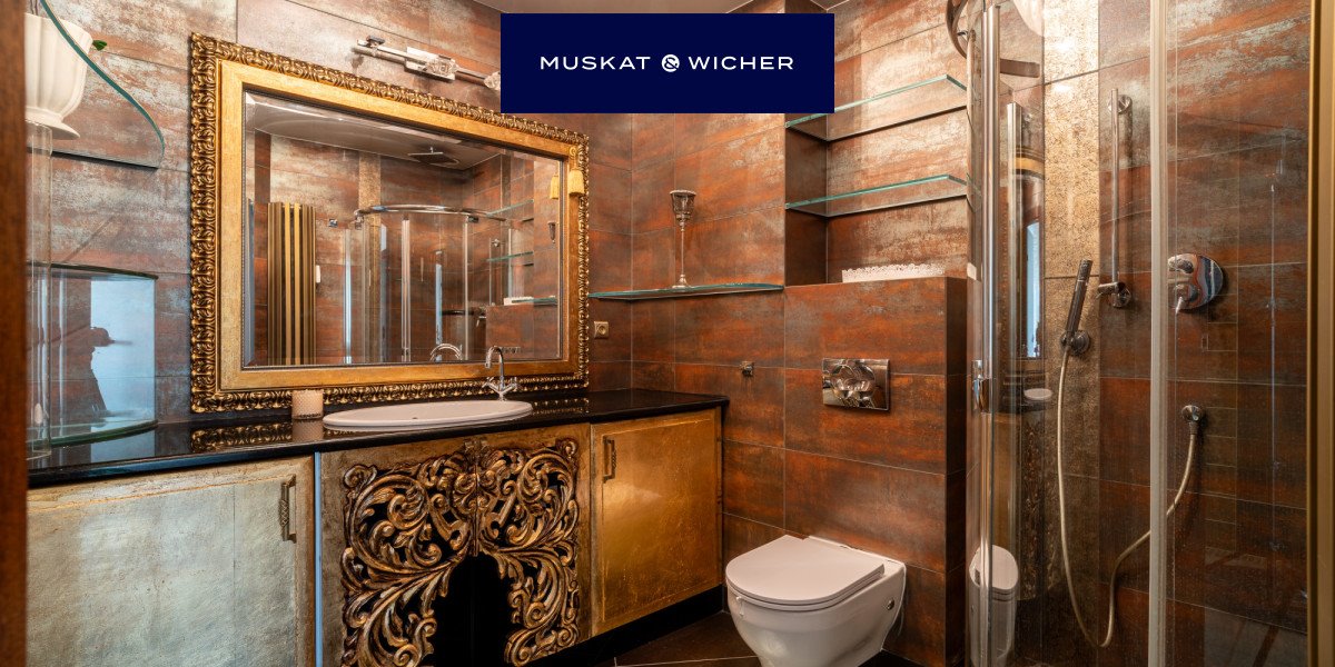 Wyposażenie obejmuje kabinę prysznicową, WC podtynkowe oraz nowoczesny pionowy grzejnik. Stylowe płytki w odcieniach miedzi i rdzy dopełniają eleganckiego efektu. Pomieszczenie jest gotowe do użytkowania - nie wymaga żadnych nakładów.
